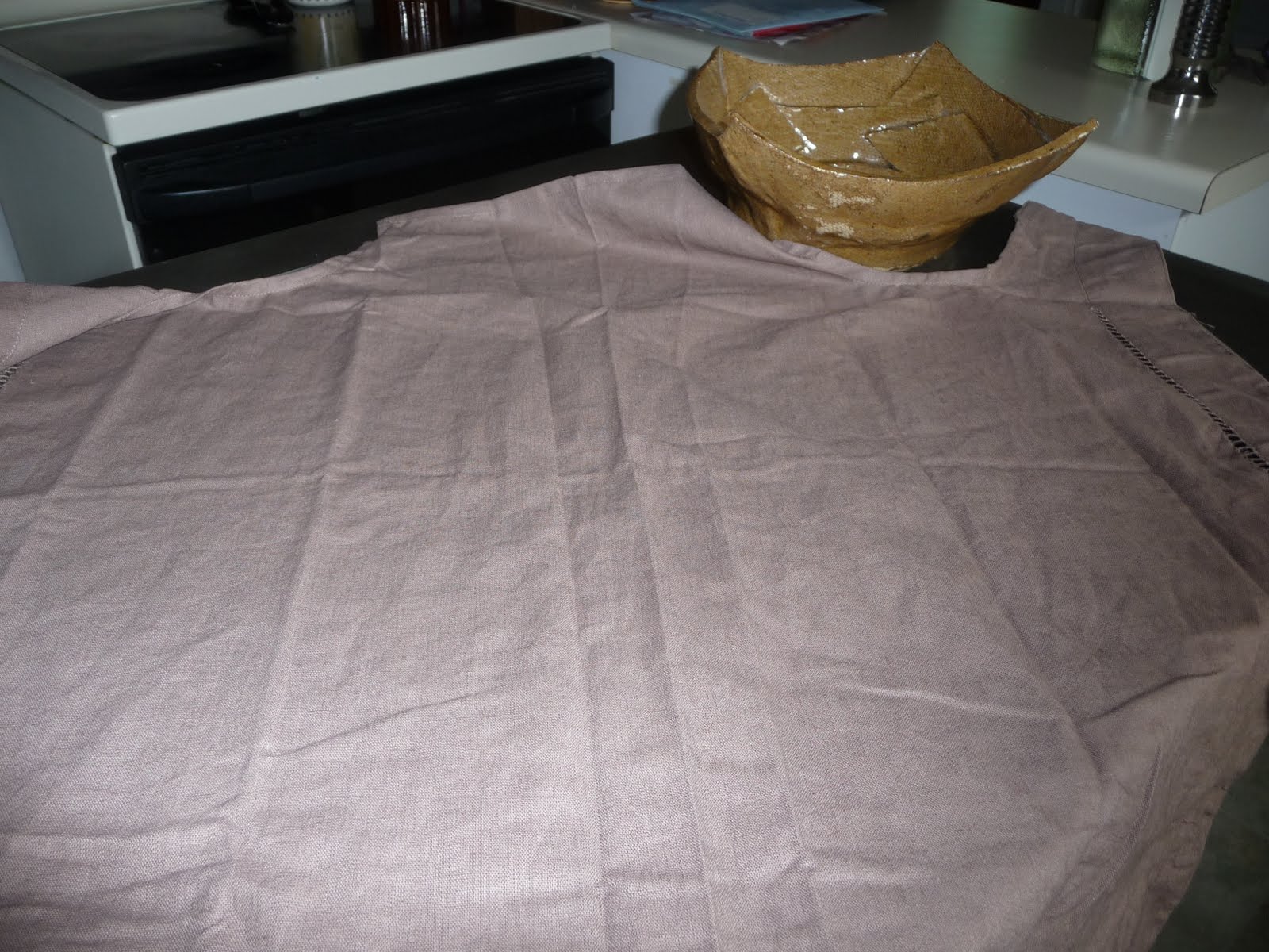 Needing to locate a piece of brown fabric in the correct shade and not being successful, I did my favorite thing.........................check out our local Goodwill. I stopped by and found the apron posted below. The perfect shade of brown - it was a done deal at $1.